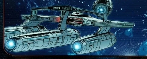 Ciekawe: Gaila służyła na USS Tereshkova (tak, statku nazwanym po Tierieszkowej), którego primetimeline'owa wersja pojawiła się w powieści "The Lives of Dax". Ciekawe czy tam również wyglądał tak: